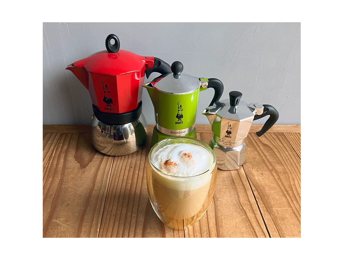 マキネッタで淹れたエスプレッソとフォームミルクのカフェラテです。エスプレッソの深みがミルクの甘みをひきたてる大人の味わいです。