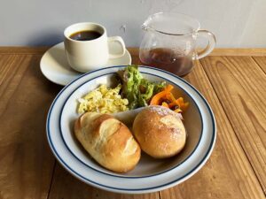 自家製パン2個とサラダのセット 800円(コーヒー付き)