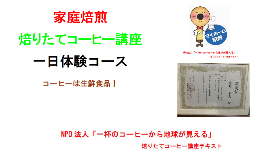 講習:美味しいコーヒーの条件他 実習:おうち焙煎とコーヒーの淹れ方